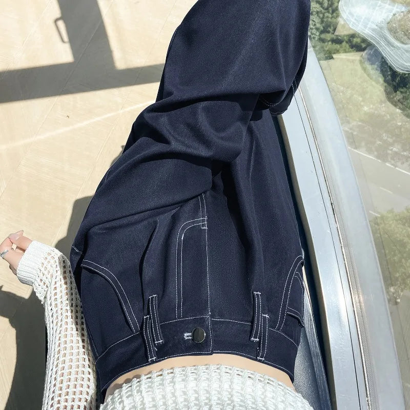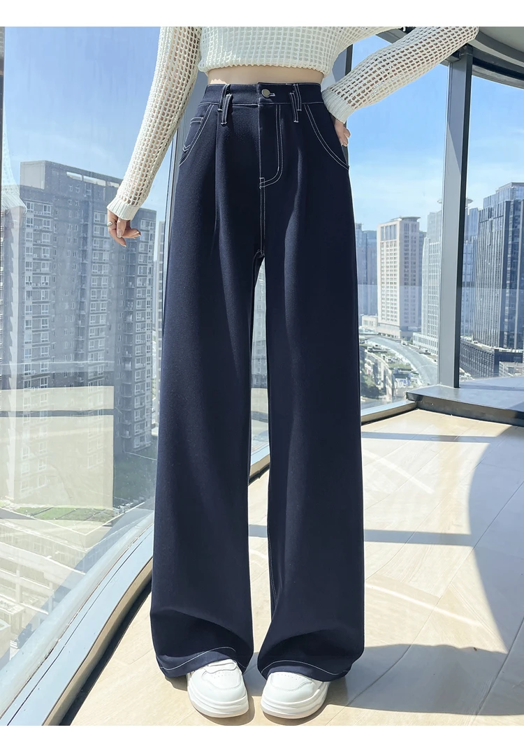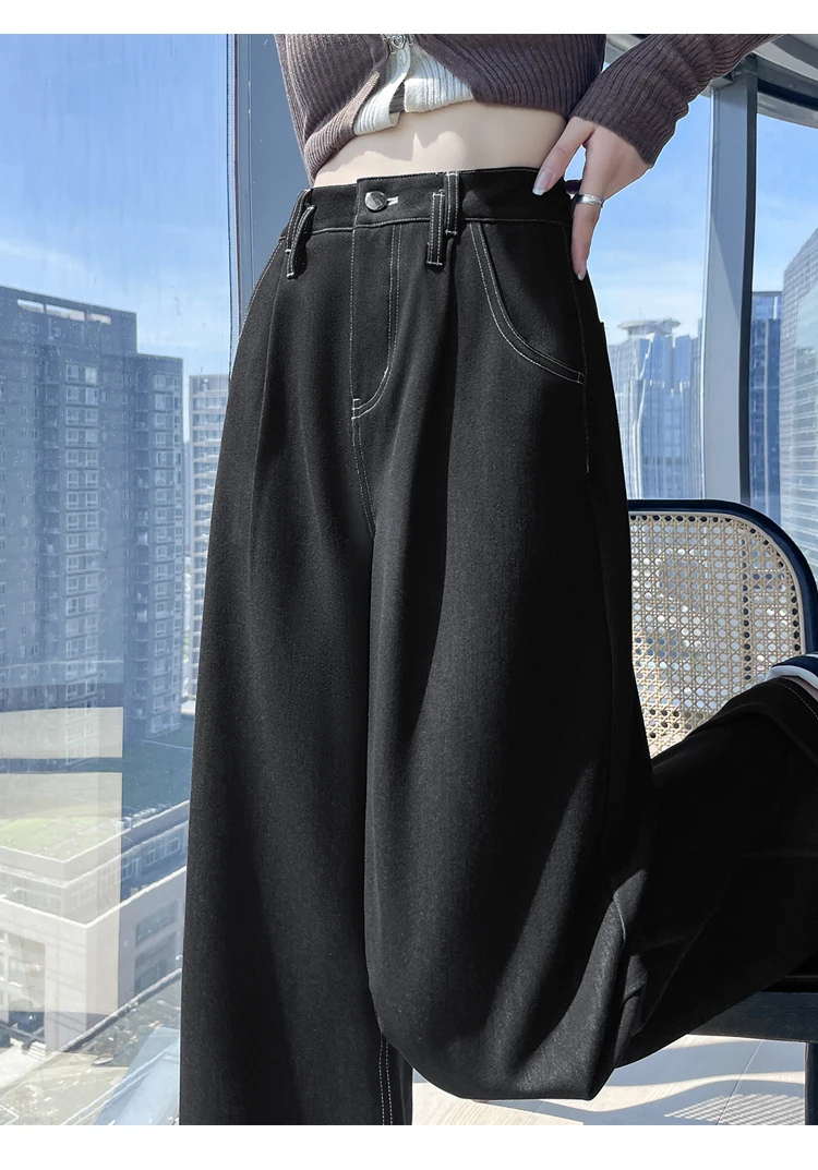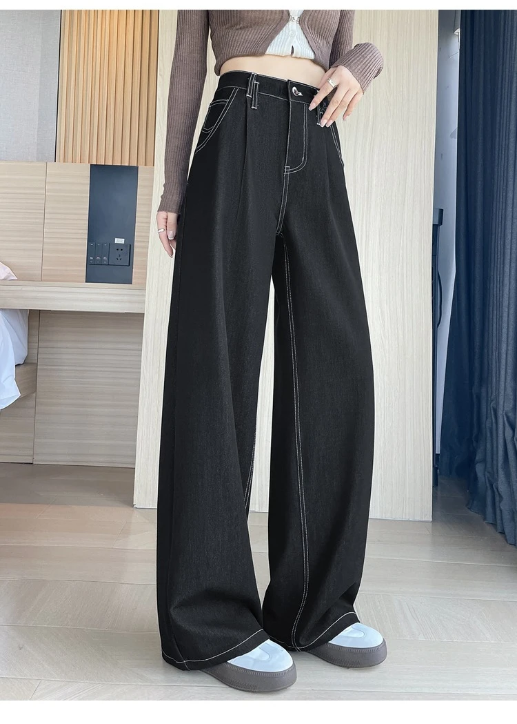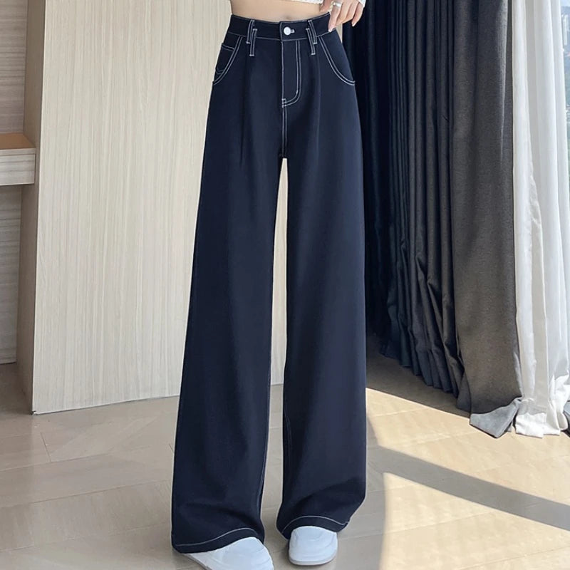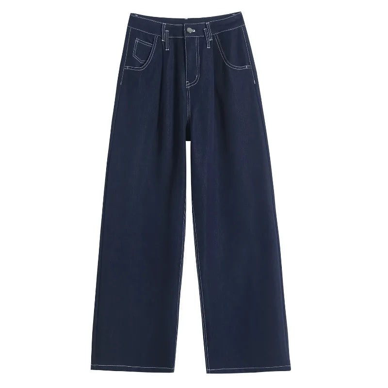 2025 New Autumn Vintage Denim Casual Loose Women's Wide Leg Pants High Waist Solid Female Straight Office Full Length Trousers