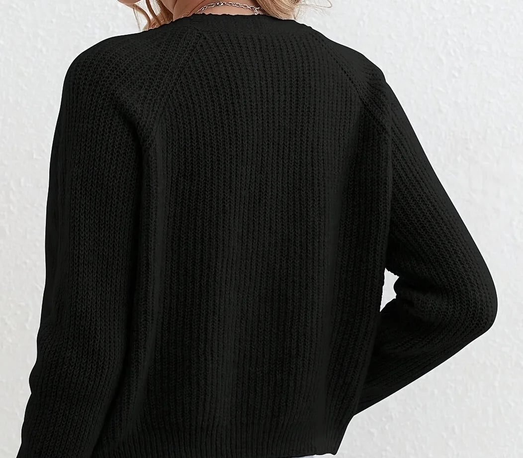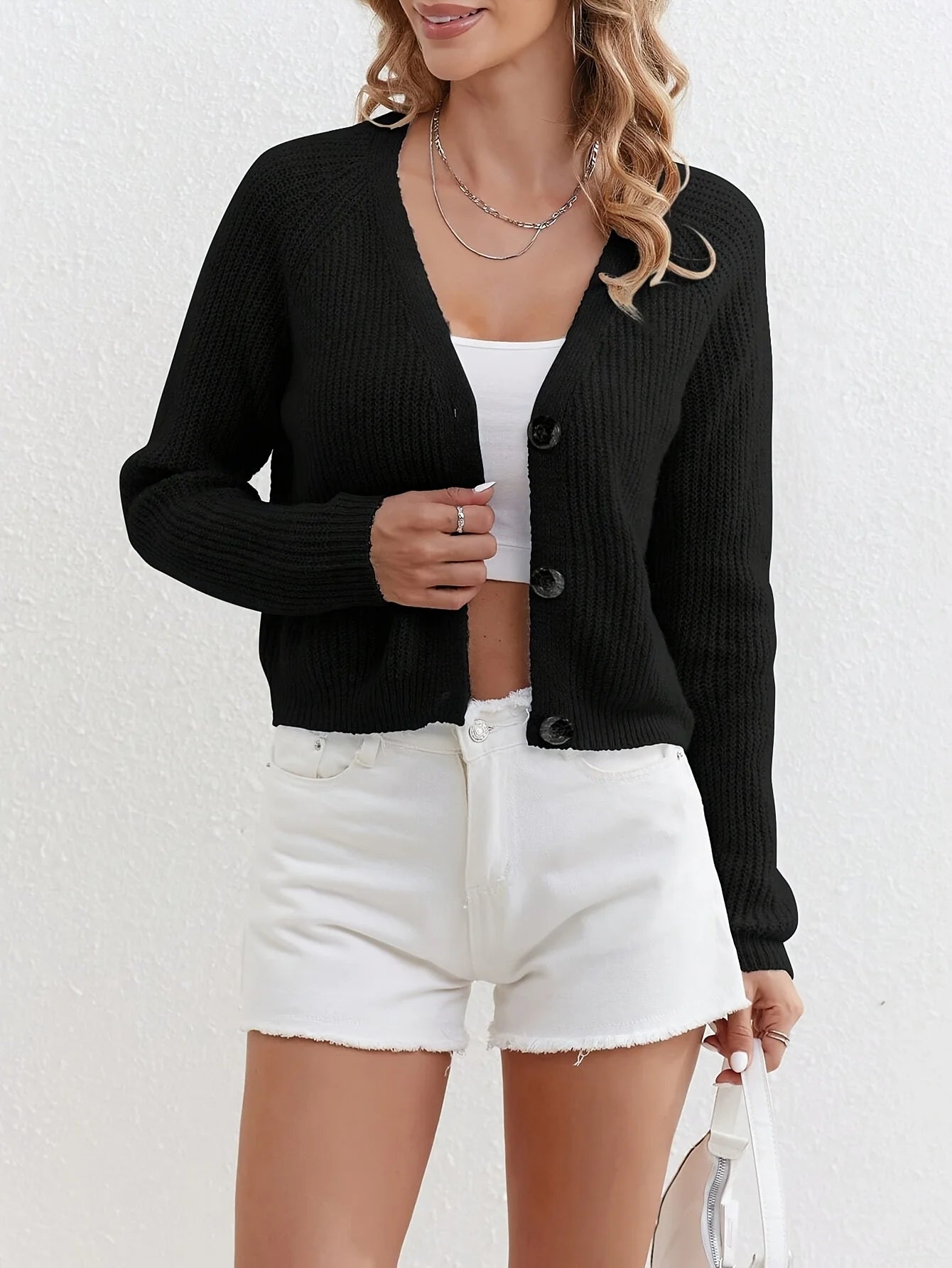 Women's Spring & Fall New V Neck Pure Color Simple Warm Slim Versatile Short Knitted Cardigan